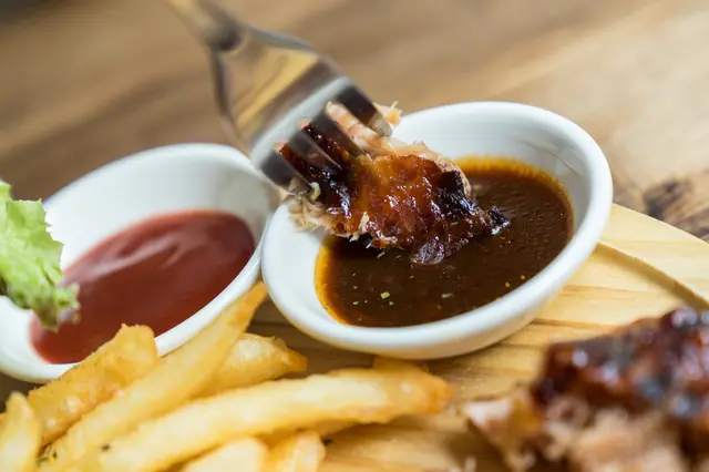 一旁附上的醬汁歐奇也很推薦~是紅酒牛肉沾醬,牛肉汁的香氣明顯,替雞腿排多添了更豐富的味蕾。