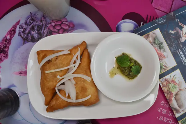 裏頭夾著肉末(雞肉x牛肉).外酥的麵皮
