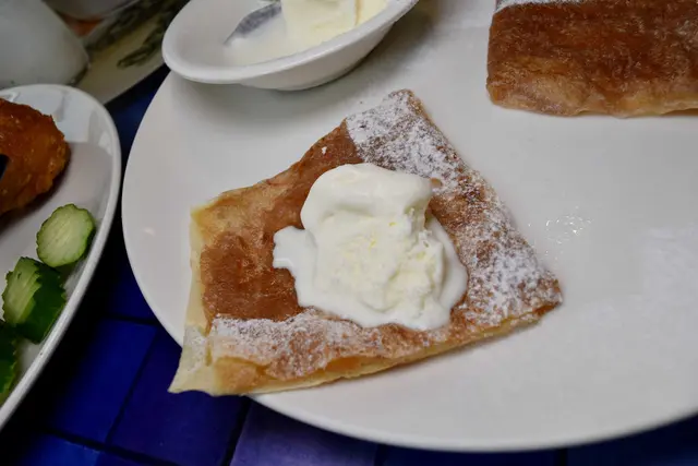 一球清爽的香草冰淇淋搭配上法式蘋果薄餅作法