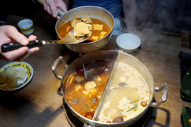 湯底有「麻辣鍋」、「養生鍋」、「酸菜鍋」、「蔬菜鍋」、「蜆蛤鍋」