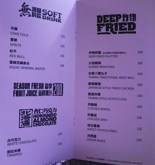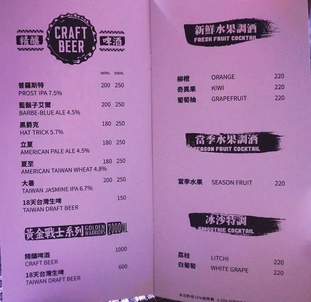 前面幾頁是飲料,包括精釀啤酒,調酒,威士忌等,當然也有軟性飲料可以選擇