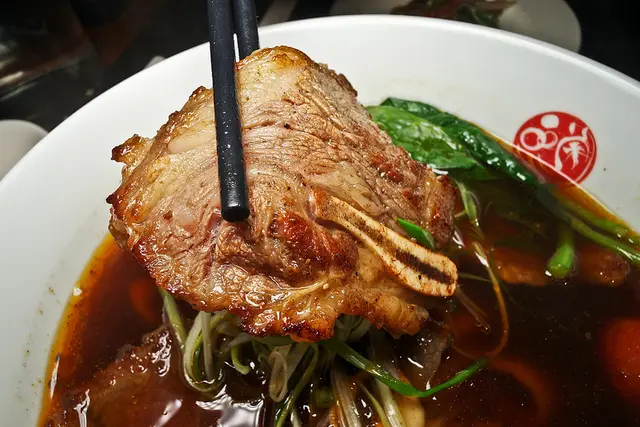 很特別的麵, 麵上片鋪著六七片很大片的帶骨牛小排