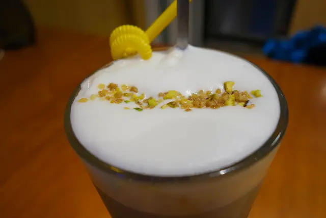 滿滿一杯的抹茶冰沙上頭還給上一大球的香草冰淇淋