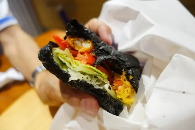 鬆軟的麵包體,搭配上生菜還有蕃茄片