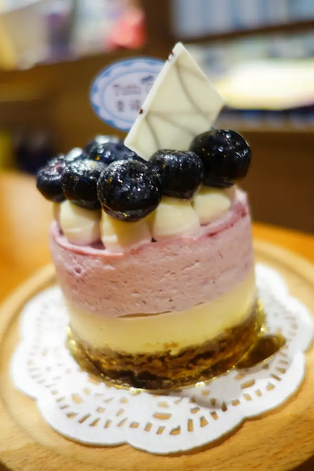 由藍莓慕絲與起司組成 ,微酸口味的藍莓幕絲搭配大量新鮮的藍莓