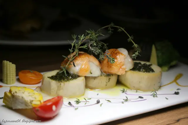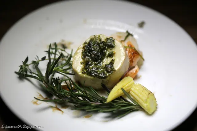 橫濱炙燒生食干貝杏鮑菇冷壓青醬沙巴庸