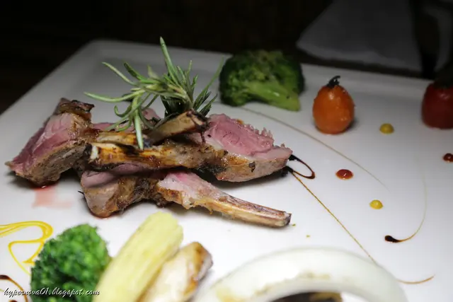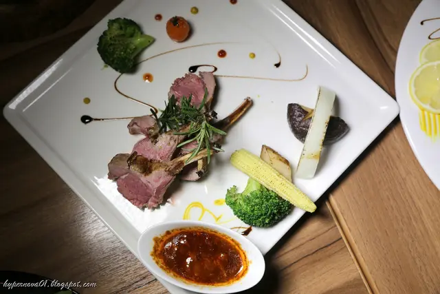 鮮嫩的小羔羊配上大量的烤蔬菜與鮮紅醬汁