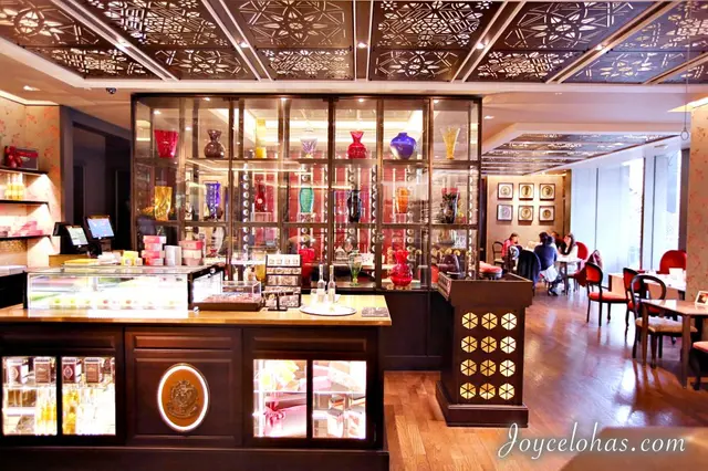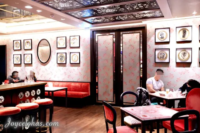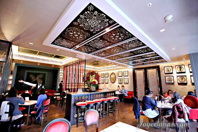 酒紅絨面座椅、壁畫、金漆以及古董傢俱將店內呈現出氣派感。