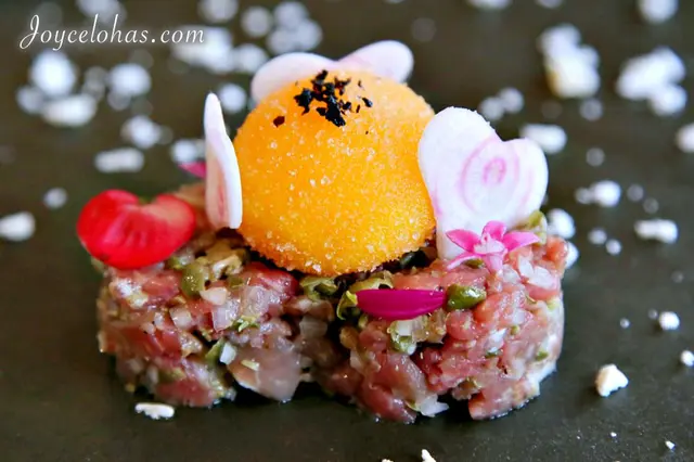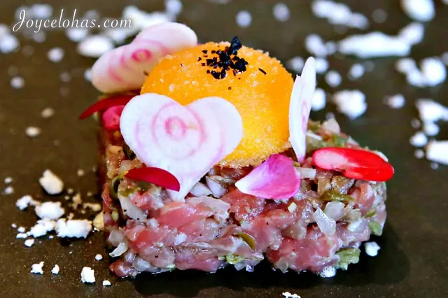將這道傳統的歐式料理-牛肉韃靼做成愛心狀!(讓我們看到眼睛也跟著冒愛心)