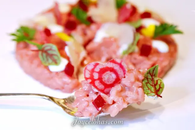 ▼前菜 – 「甜菜根燉飯佐帕瑪森起司」