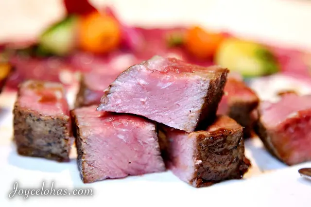 覺得這粉紅色系的牛排擺盤完全會讓大家少女心噴發,胃口大開!
