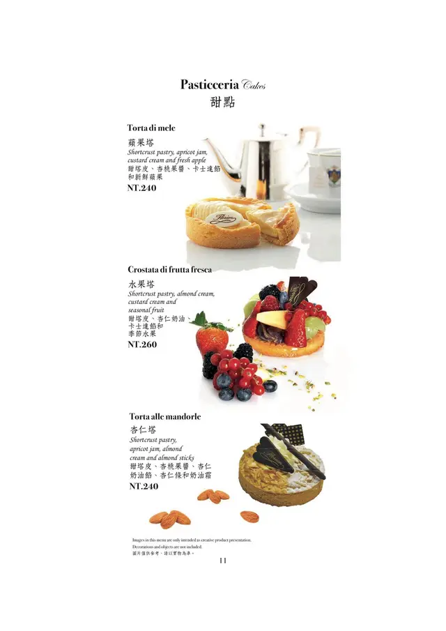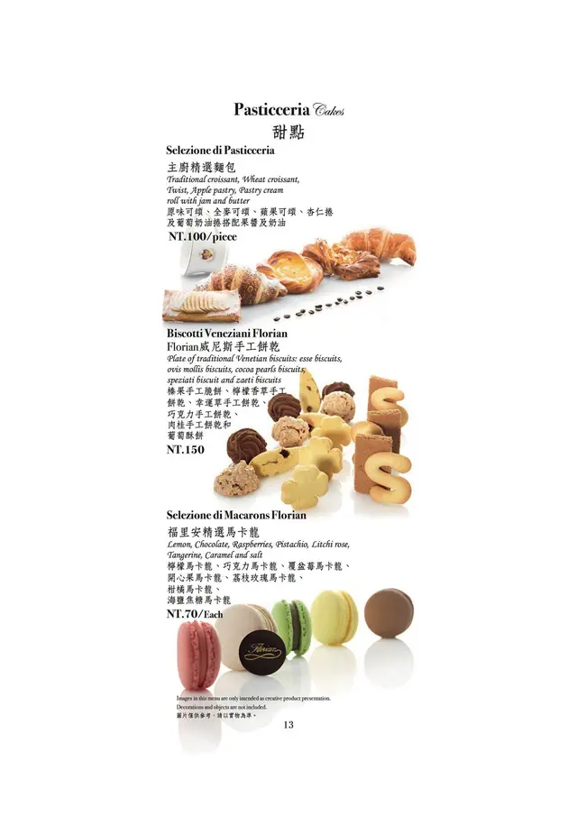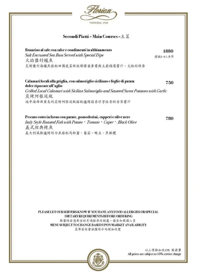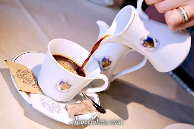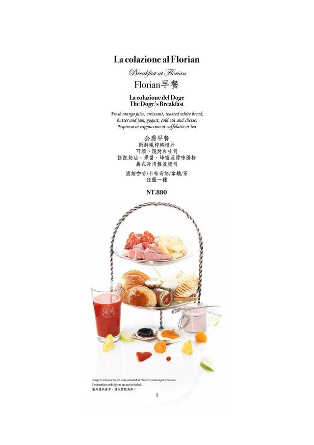 寬敞空間,酒紅絨面桌椅配上壁畫、金漆、古董傢俱,裝潢高雅氣派結合古典色系的內斂,看到一個個服務人員從容高舉大銀盤送餐的畫面,要不是聽到中文,還真讓我以為來到威尼斯的花神本店,進到店裡馬上會被優雅浪漫的氣氛感染,心情瞬間放鬆,步調也跟著慢起來。
