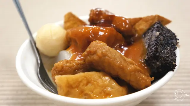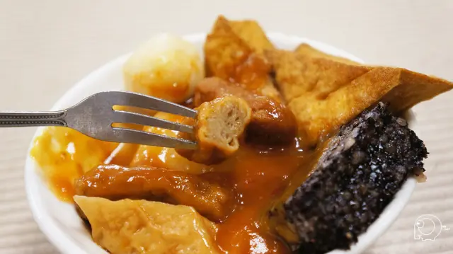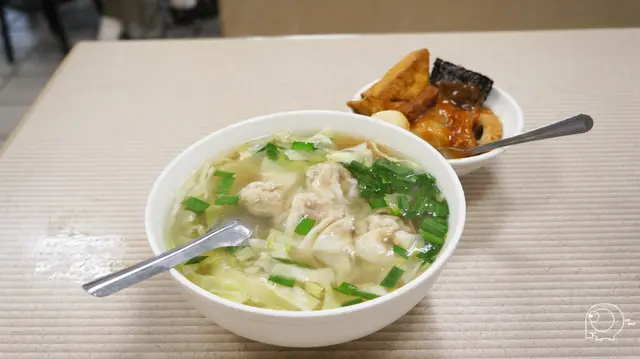 老K先點了一碗雞絲餛飩麵跟甜不辣小的來吃