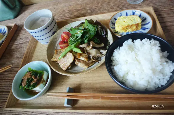 有排骨湯 豆腐 玉子燒 香煎豬里肌及白飯一碗