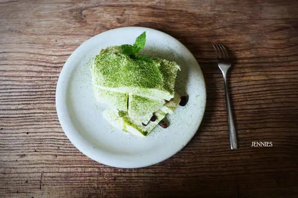 顛覆了我對提拉米酥的刻板印象,抹茶綠粉灑在潔白的軟布糕上,吃起來有著像豆腐的口感。