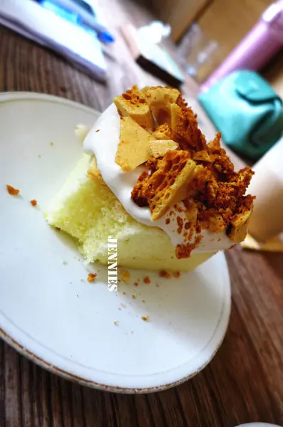 香草戚風蛋糕- 戚風也是這裡的招牌,上面用的是古早味的糖塊,