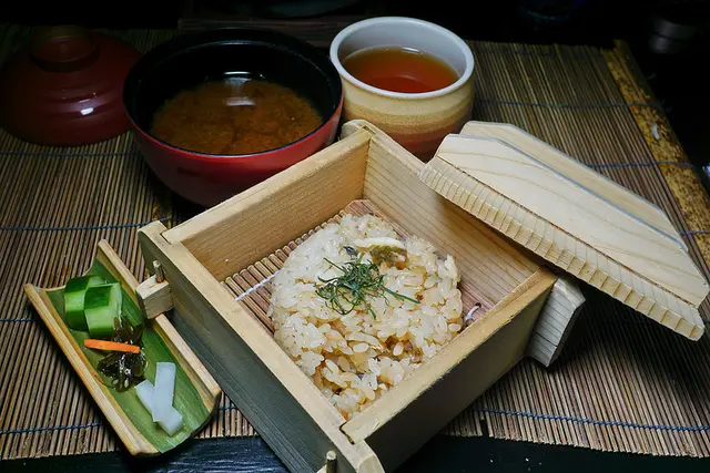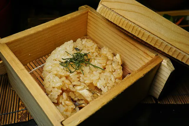 這飯非常下功夫, 要先用烤乾的香魚骨與昆布, 清酒熬湯, 再把香魚肉剁碎, 與湯再加上夢美人米(日本冠軍米)一起煮