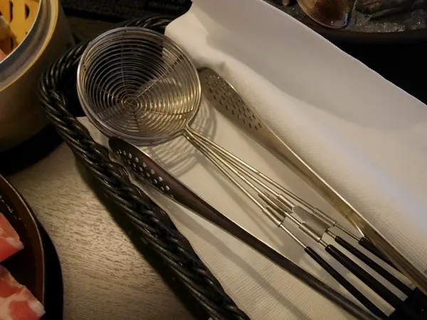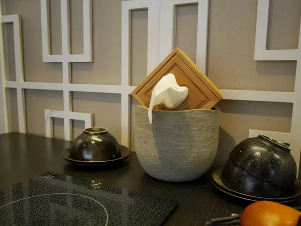 這邊的用餐器具還滿有質感的,中間的石頭桶子是垃圾筒哦!