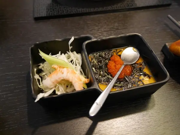 左邊是鮮蝦沙拉,右邊則是和風嫩豆腐。