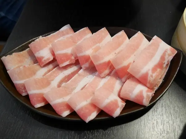 點綜合魚片鍋的,還可以額外有一盤肉,我點的是培根牛。