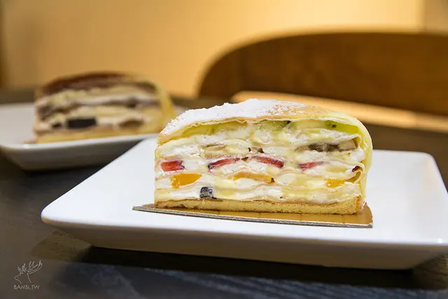 2016.12.3三訪時,覺得千層水果蛋糕和以前一訪時所吃的外觀有點不同,另外卡士達醬的甜度比起以前來的高一點,鮮奶油比例變多也比較稠,雖然仍算是不錯吃,但我比較喜歡以前的味道。