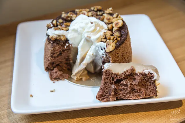 巧克力戚風蛋糕風味中規中矩,帶點Q軟的口感,也有可能是我本身較少接觸戚風蛋糕,不過榛果部份可增添香氣。