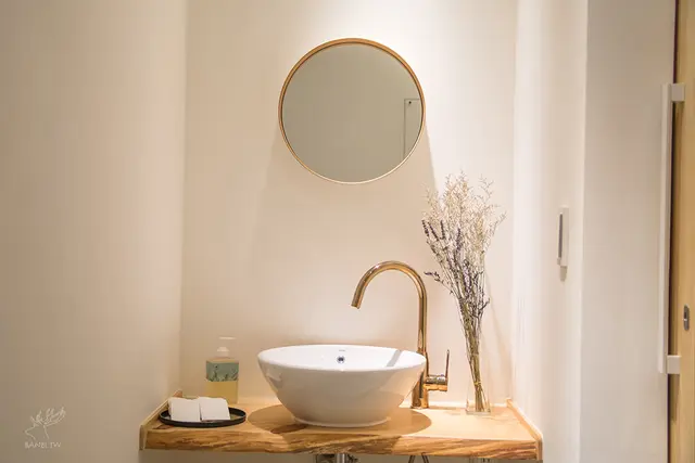 就連廁所外的洗手台也帶有了日式的元素,看著廁所內的捲筒衛生紙,未使用過的部分折成倒三角形表示是整理過或新的,和日本部分餐廳會注意到的細節一樣。
