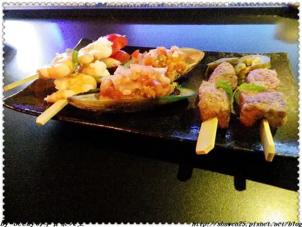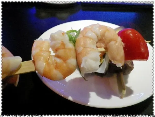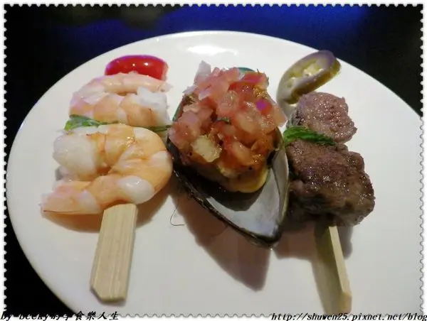 *海陸開胃小點~有鮮蝦、沙朗骰牛、炙烤淡菜。