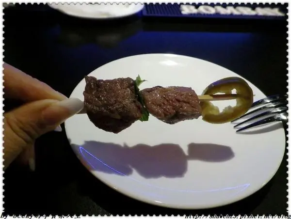 沙朗骰牛與墨西哥辣椒整個入口咀嚼有著微鹹辣口感,牛肉鮮嫰多汁,而中間的薄荷葉讓整體充斥著香味。
