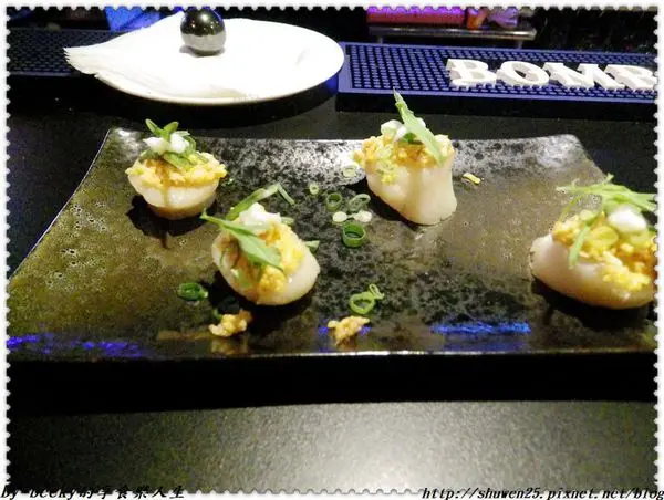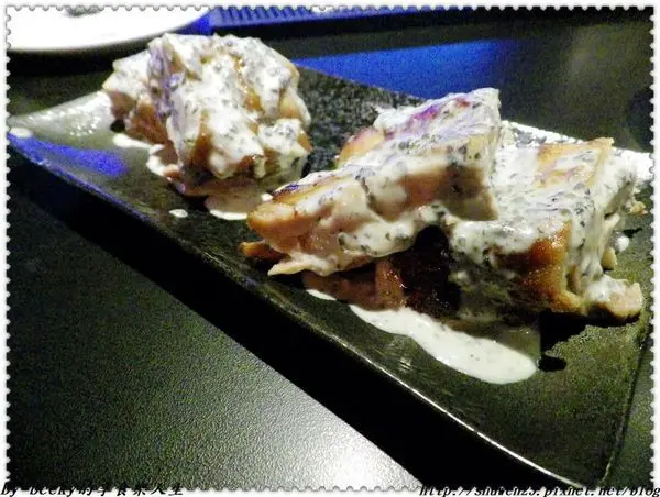最後的淡菜大略烤過,上頭的佈滿莎莎醬,入口有著鹹帶點微辣,有著Q彈口感,也很對味。