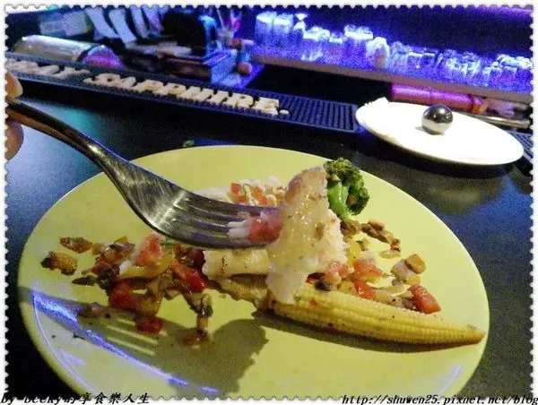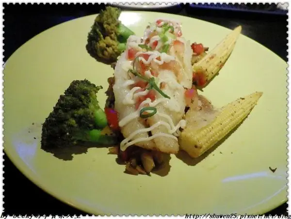 這個多利魚的擺盤非常好看,花椰菜及玉米筍只有單用胡椒調味,吃的到食材的原味及甜味,洋蔥、蕃茄及菇類混炒,灑滿魚身,吃起來香味十足,帶點鹹香味,與多利魚的鮮嫰多汁十分搭配,這道點的真好~~~