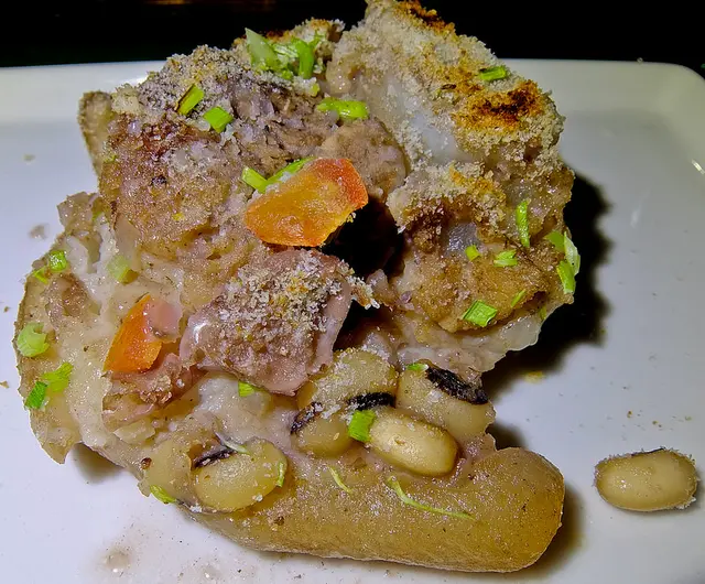 雖然愛吃肉, 但對豆子料理也很有興趣, 這些豆子還蠻好吃的, 香腸則也不錯, 原始版本應該是用一些德國香腸之類的