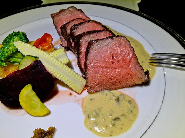 這道料理的小缺點是, 盛裝的餐盤可能要想辦法換一下, 牛排在這個熟度會滲出血水 (其實是肉的體液, 牛隻在宰殺時已經放過血了 )
