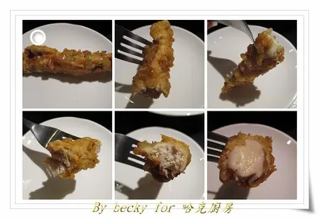店家把雞柳條先醃漬入味後再裹上特製的酥炸粉去炸,夾一條雞柳條來吃,咬一口,外酥內軟,味道很香濃,而雞肉的肉質很鮮嫰,還包留肉汁在其中,上頭淋著蜂蜜芥末醬,吃起來略甜,與雞柳條很搭配,而上頭也灑有百里香及少許的胡椒,不會油膩,整道吃起來非常開胃。