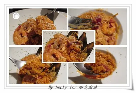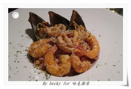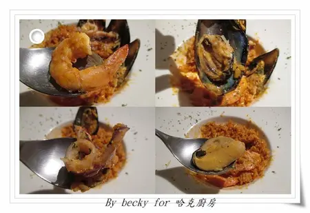 而洋蔥及蕃茄及起司融合在一起,很有味道,飯是用生米去燉煮,雖然有些硬,但米芯卻是熟透,咀嚼起來非常美味!