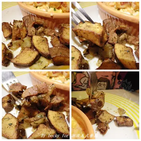 薯塊吃起來很脆軟,與培根、洋蔥下去混炒,所以帶點鹹味及胡椒味,還有少許的辣味,上頭灑著茴香增加香氣,味道適中。