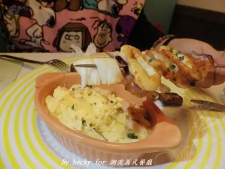 創意早午餐部份~鮭魚起士炒蛋佐海鮮串