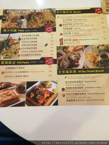 接著來看看菜單,選擇滿多,什麼都有,另外義大利麵的部分是早上11:00過後供應。