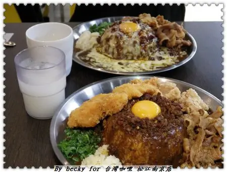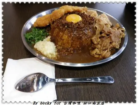 炎炎夏日可以來個滿足口腹之欲的味重料理,這次來到了位於松江南京7號出口、近四平街附近的台灣咖哩,本家台湾咖哩是在今年1月於高雄開了第一間本店,而台北松江店則是第5號店,至於台灣咖哩由來是~台日混血的老闆思念祖母特製的台式肉燥滋味,就把媽媽煮的日式咖哩結合在一起,就變成了台灣咖哩了,那這次就來試試台日双拼的口感。