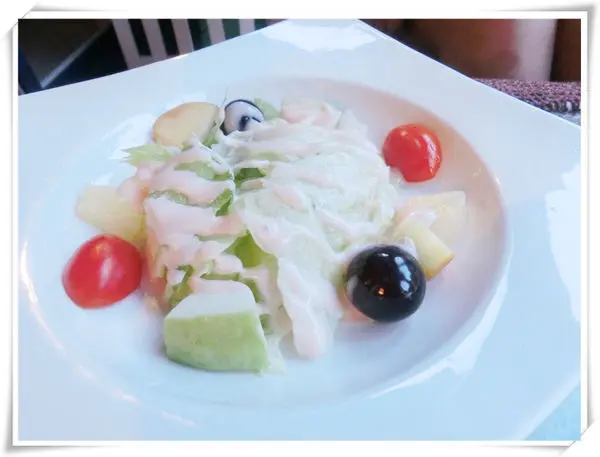 鮮脆菜加上沙拉醬沾水果很清甜份量適中。
