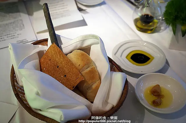 由於今天是特別的試菜餐敘,因此餐廳方面將新菜單的幾樣套餐主菜,以小份量的方式給阿偉嘗嘗。不過如果加上餐前麵包及餐後甜點、飲料,算起來也有10道,也很多啊!
