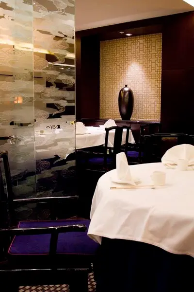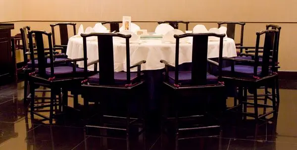 空間設計低調沉穩,共可容納104賓客,餐廳內有許多中式大型圓桌 -