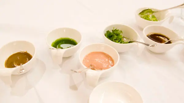 五顏六色的沾醬可供客人喜好搭配沾食,