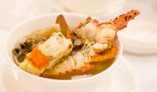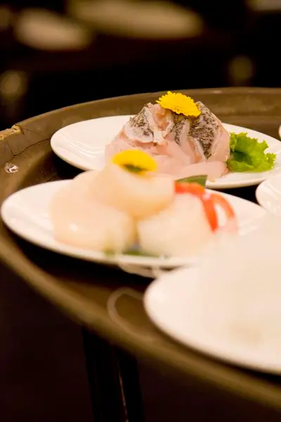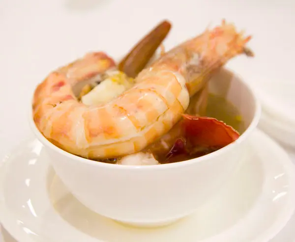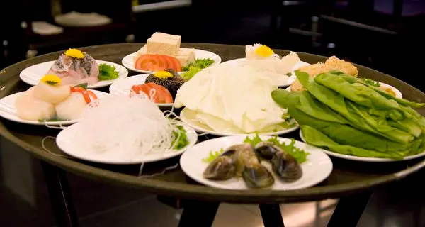 鮮干貝、鮮魚片、豆腐、海參、魚肚、豆皮、小白菜、綠色時蔬、蛤蠣。