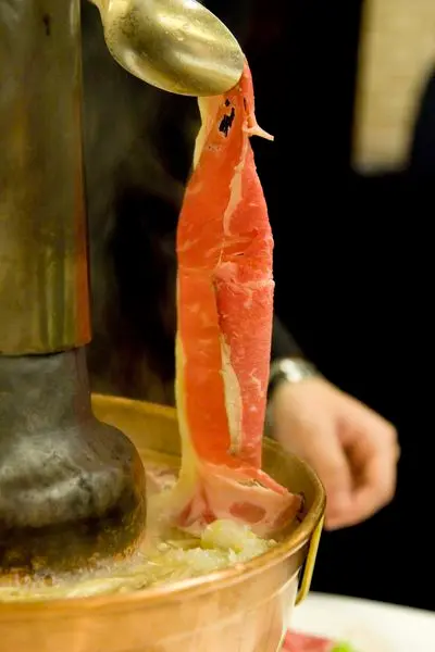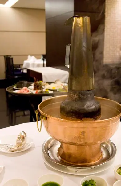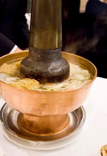 火鍋登場! 是用像平常吃酸菜白肉的那種高高的鍋物,