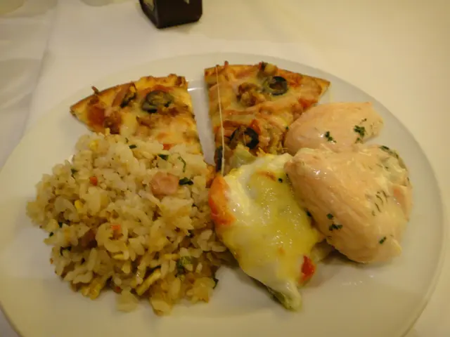 奶油鮭魚味道不錯,每塊都很厚實。火腿炒飯在buffet中實在不應該弄來佔胃,但羅浮宮的火腿炒飯很不錯吃><"