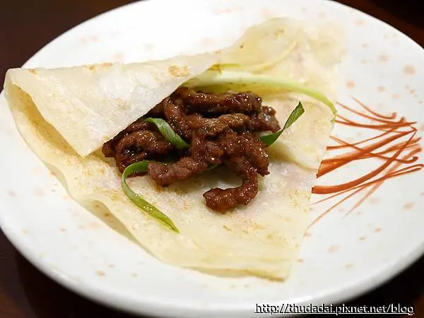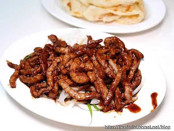 清真中國牛的斤餅乃薄韌平坦的順口型,其牛肉絲較為滑嫩(可能抓粉較多?),