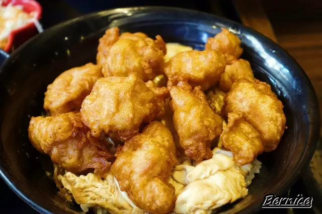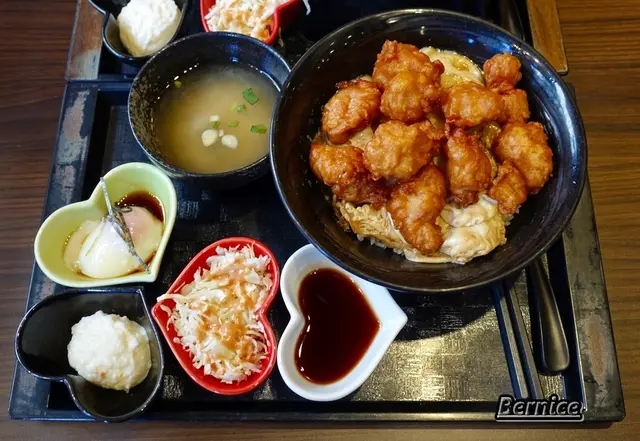 先上桌的炸雞丼有著滿滿的炸雞塊,搭配熱騰騰的白米飯,光看就讓人食慾大增