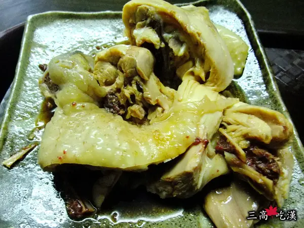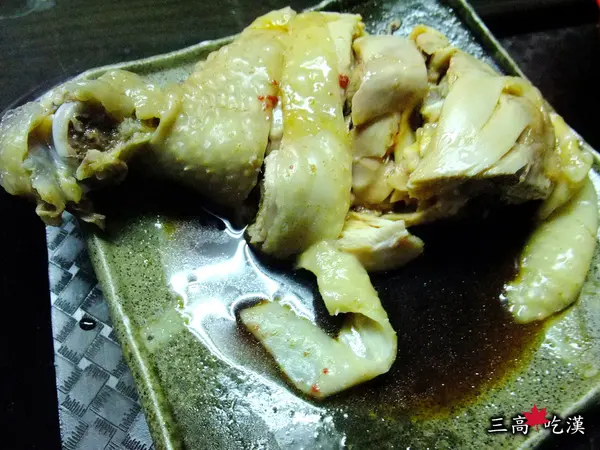 一般肉雞雞腿來的大,白切後淋上帶甘味的醬油。