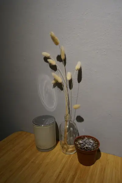 木桌上時不時可看到盆栽和蠟燭裝飾